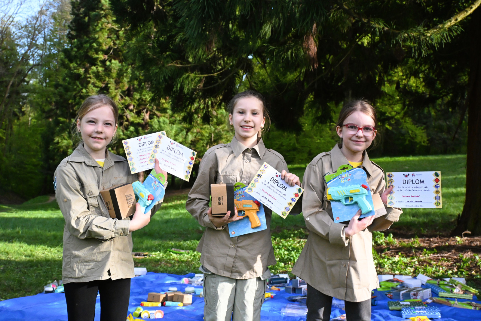 V celkem 12 tříčlenných hlídkách byla severácká stopa, jelikož některé naše děti běžěly ve smíšené hlídce se závodníky z jiných oddílů. Na závěrečném nástupu bylo vyhlášeno a oceněno pět našich hlídek. V kategorii Nejmladší hoši se na 4. místě umístili Štěpán, Peťa a Robert. Na třetím místě se umístily v katagorii Nejmladší dívky Matylda, Barča V. a Mariánka. Také v kategorii Mladší se umístily dvě naši hlídky, když mezi Dívkami skončily na skvělém 2. místě Evička, Valča Š. a Valča S. a v kategorii Hoši byli čtvrtí Daník, Marťa a Albert. Za páté místo v kategorii Starší dívky pak byly vyhlášeny Gabča, Barča Kuč. a Šárka. Další výsledky našich dětí doplníme později, až se dozvíme kompletní pořadí.