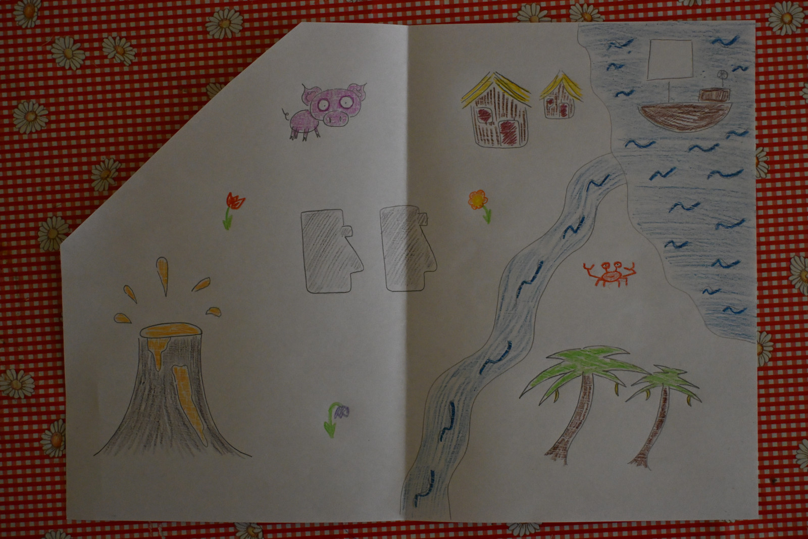 V pátek dopoledne jsme se rozhodli prozkoumat ostrov, který jsme pojmenovali Velikonoční, kvůli blížícím se Velikonocům. K tomu jsme potřebovali získat kopii mapy ostrova, která byla velmi stará a mohl se k ní tak dostat jen jeden člověk z týmu, aby se mapa nepoškodila. Děti si tak v týmu musely pomocí slovního popisu mapy a následně pantomimou předávat, jak mapa vypadá a poté ji nakreslit. To se všem týmům nakonec podařilo a odpoledne jsme se tak mohli vydat na průzkum ostrova, přičemž naším cílem bylo najít kamenné sochy vypadající jako lidské hlavy, které nás na mapě ostrova zaujaly. Na výlětě jsme navštívili město Třebíč, kde jsme v obchodě doplnili naše zásoby sladkostí, ale sochy jsme bohužel nenašli.