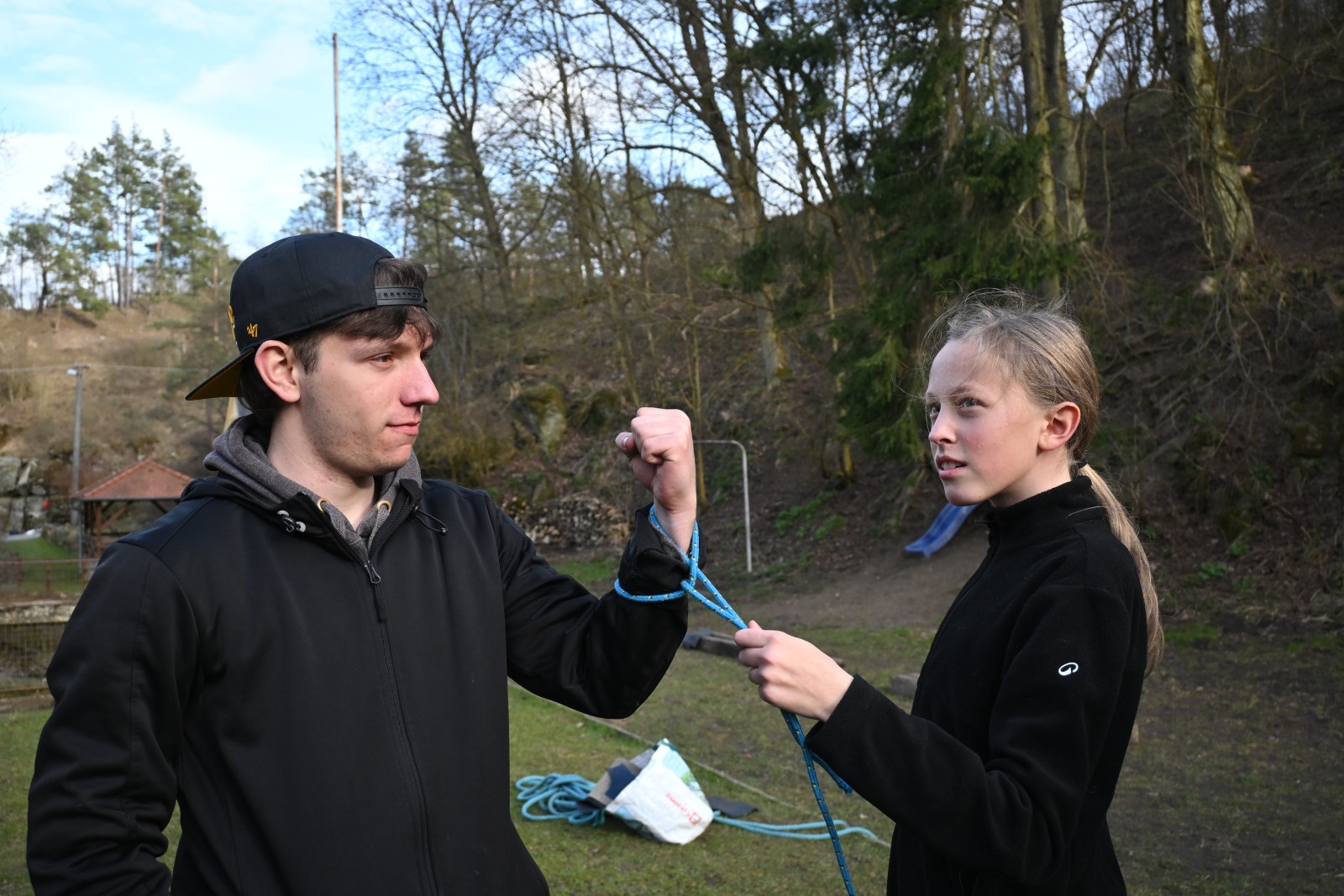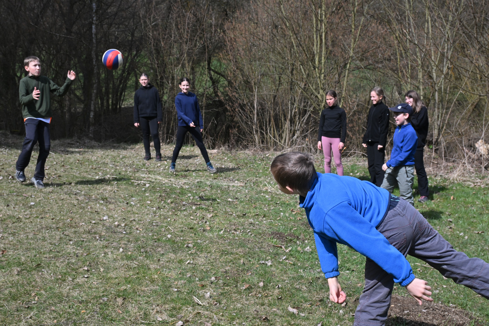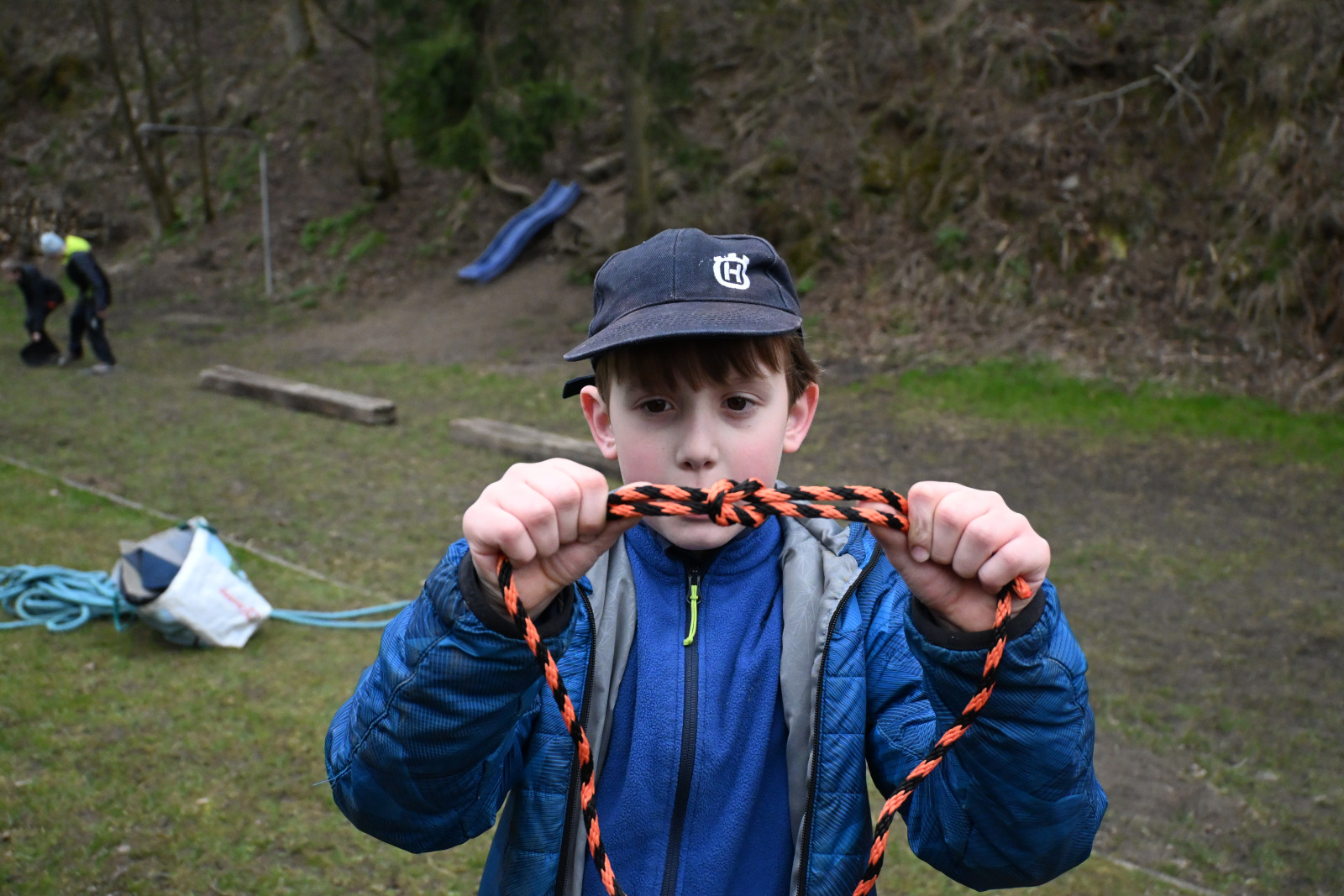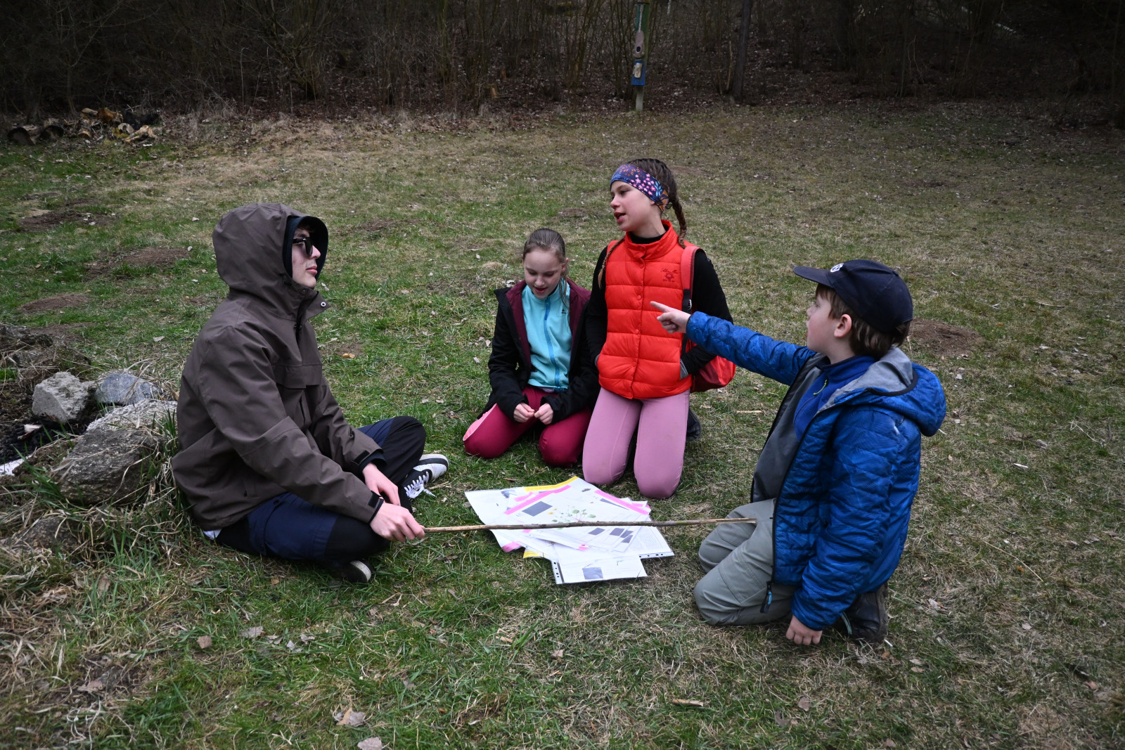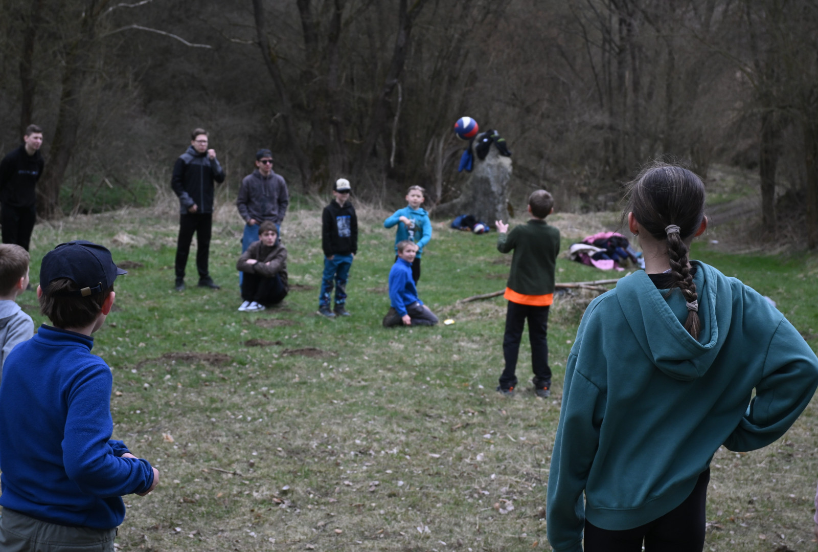 Na letošní Velikonoční výpravě jsme vypluli na expedici do Tichého oceánu na lodi Adventure kapitána Jamese Cooka. Hned první den výpravy hlídka ve strážním koši zahlásila "Země na obzoru". Abychom mohli k tomuto ostrovu doplout a neztroskotat přitom na nějakém útesu, tak musely děti získat správný kurz, pod kterým přistát. Děti byly rozděleny do tří týmů: Modří (Verča, Peťa M., Daník, Valča, Mariánka a Robert), Bílí (Kačka, Marťa, Klárka, Magi, Barča, Peťa T. a Patrik) a Žlutí (Viky, Alenka, Albert, Evička, Marek a Štěpán). Dvojice z týmu se vždy vydala k jednomu z útesů, ze kterého si vzala šifru, po jejímž vyluštění získala část kurzu. Poté, co jsme ho měli celý, jsme mohli na ostrově přistát a našli jsme tam vesnici, kde nás přivítali místní domorodí obyvatelé, u kterých jsme přespali.