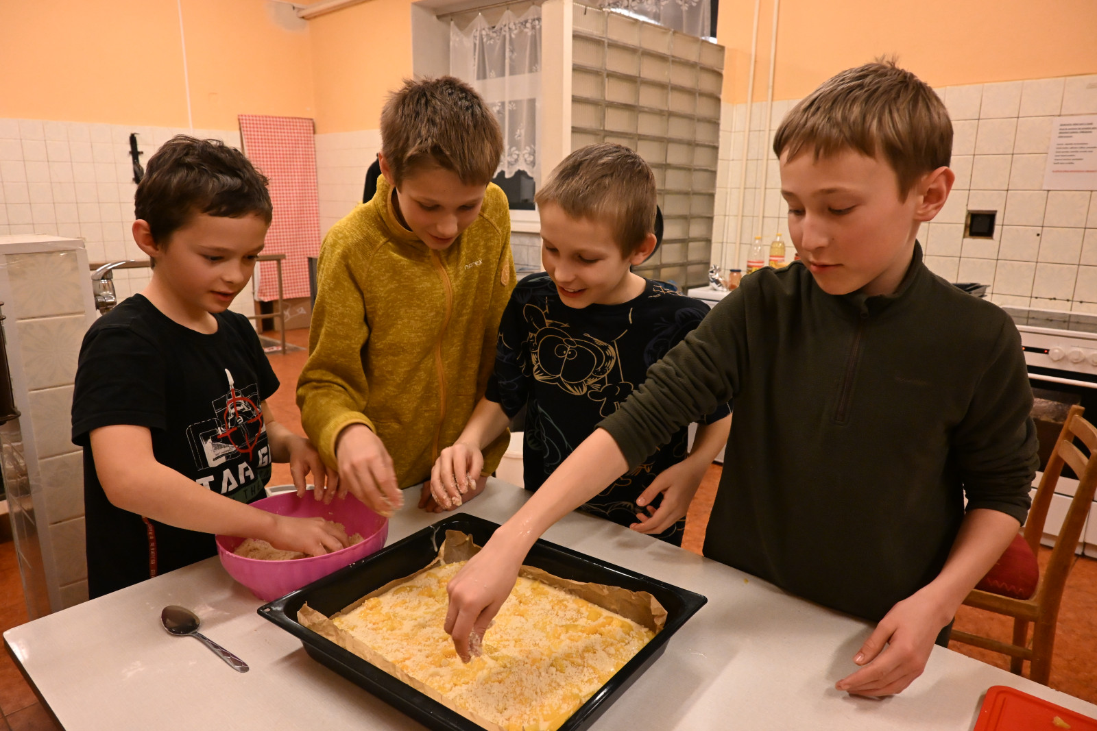 Po návratu na ubytování jsme zjistili, že na ostrově se nachází ještě druhý, nepřátelský, domorodý kmen, který sochy ukradl. Vyrobili jsme si proto každý alespoň svoji zmenšenou figurku sochy jako camrátko na severáckou košili. Děti také pod vedením kuchařky Nikči upekly buchty na sobotní snídani.