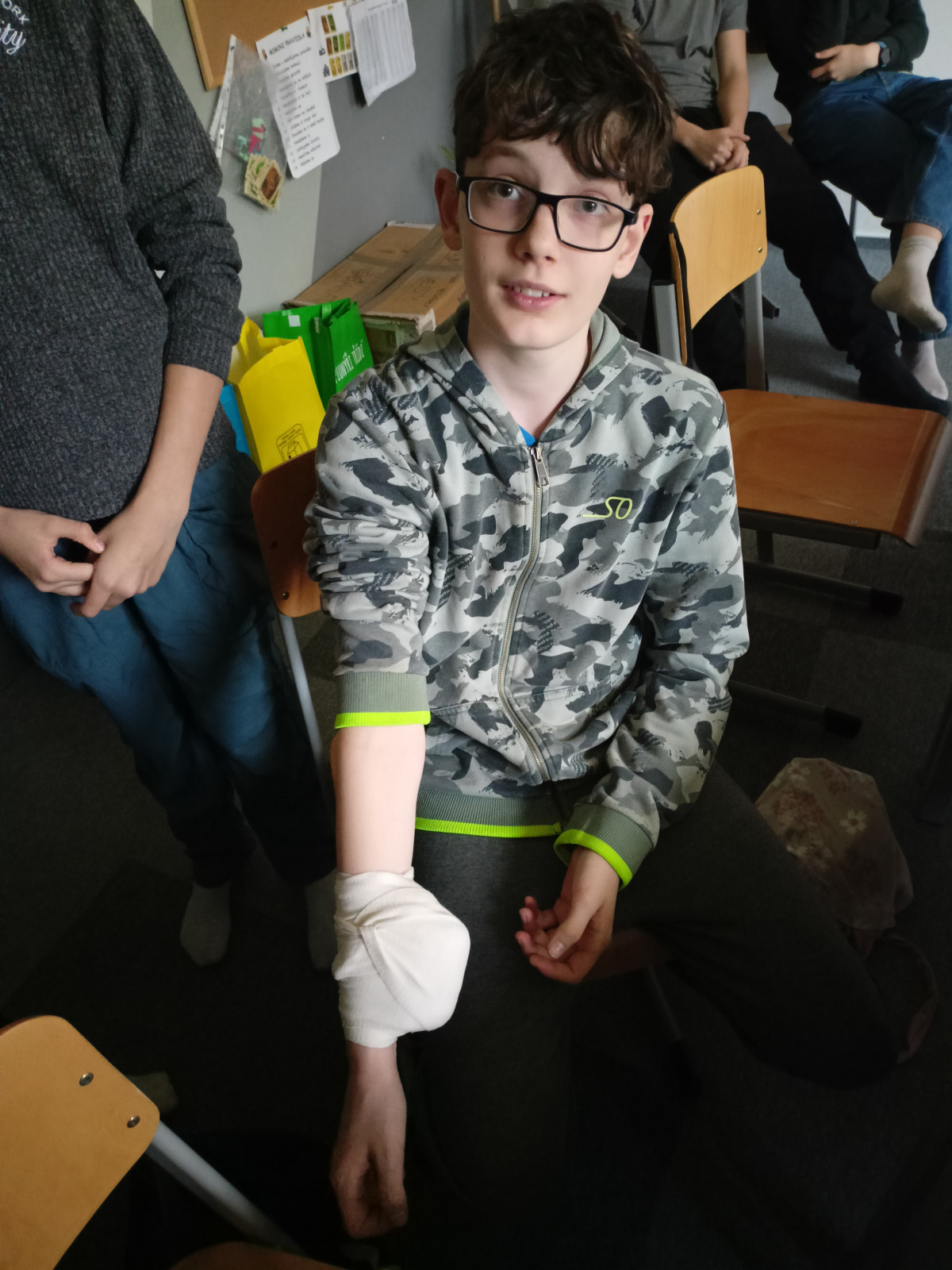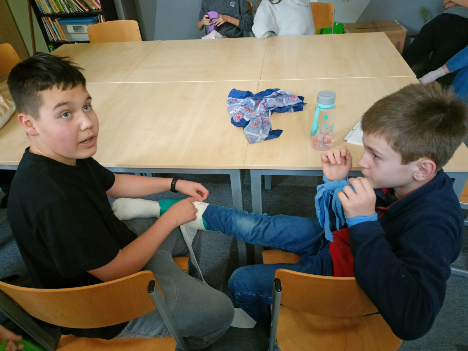 Na schůzkách v miulých týdnech jsme trénovali například práci s mapou a buzolou, kreslení plánku nebo jsme si zopakovali morseovu abecedu. Na poslední schůzce jsme trénovali na stanoviště první pomoc. Vyzkoušeli jsme si, jak ošetřit zlomeninu bérce, poranění oka nebo tepenné krvácení. Také jsme se naučili výrobit nosítek, na kterých jsme provedli transport raněného.